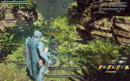 Для поиска нужных вещей используем компас наверху экрана. Собрав 3 предмета, возвращаемся к устройству и устанавливаем их в него. Добыть одну пару осколков удастся только после уничтожения двух ульев и убийства командиров. Затем открываем две клетки и достаем из них осколки.