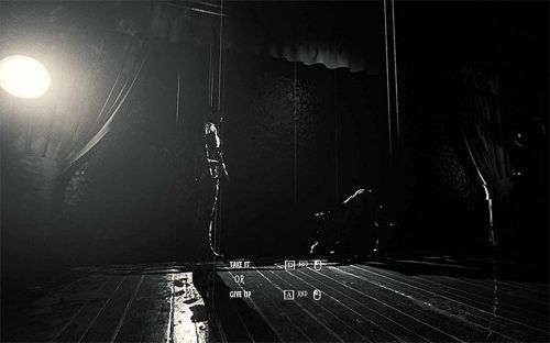 Решение, влияющее на концовку: Взяв пулю, открываем дверцу с левой стороны и проходим через ширмы, двигаясь вперед. Вскоре игра попросит сделать выбор – выстрелить из пистолета в манекен женщины или мужчины. Если выберем второй вариант, то пойдем наперекор воле режиссера, а если первый, то будем действовать согласно его плану.