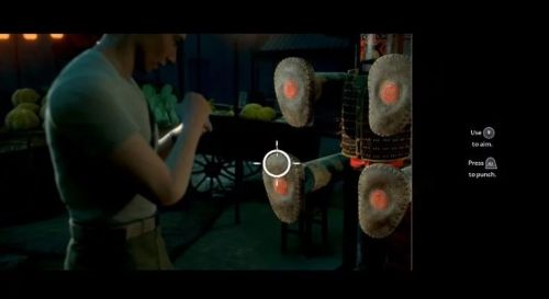 Возвращаемся к приятелю, а потом тренируем свои навыки на манекене. Для этого проходим QTE-секцию, во время которой необходимо точно наводить прицел и нажимать на определенную кнопку, а также уклоняться от ударов «врага». Независимо от того, как завершится поединок, оба персонажа, находясь в нетрезвом состоянии, возвратятся на судно, куда успели погрузить странные ящики.