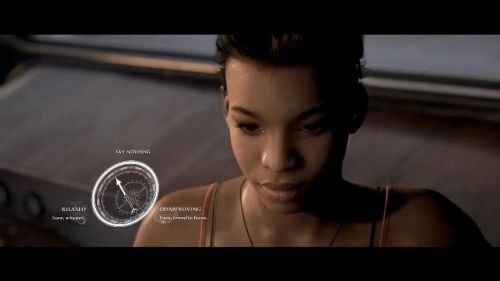 Далее нам предстоит сыграть за Алекса. Говорим несколько дежурных фраз и двигаемся дальше. Если скажем «Рассчитал» и «Разочарование», то ухудшим мнение о себе у Флисс, а потому следует просто помолчать. Беседуем с другими членами команды и исследуем разнообразные объекты по дороге к брату.