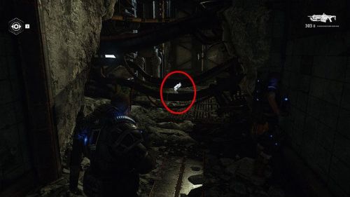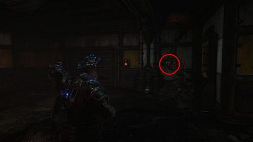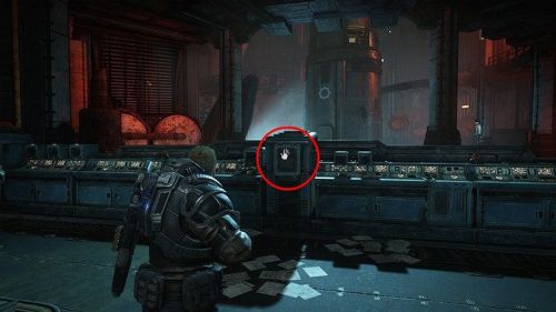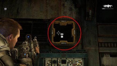 Разобравшись с боссом, просим Дэйва открыть нам дорогу впереди. Указываем на панель, показанную на скриншоте, и отдаем дрону приказ. Перед тем как заходить в офис командира, проверяем оружейный склад. В нем мы можем найти новый предмет коллекционирования – жетоны Коалиции: погибший боец Коалиции из Азуры. Выходим из помещения и направляемся к лесенке.