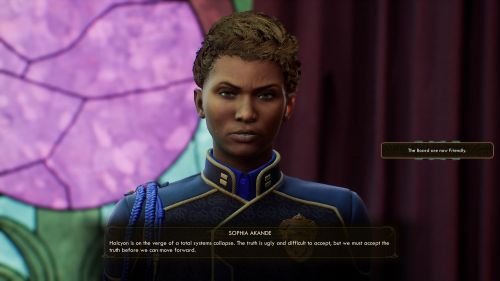 Выполнив задание «Сигнальный пункт в космосе» нам нужно будет рассказать все, что мы знаем, Софии. Она поведает нам о не очень хорошем состоянии колонии и расскажет, как можно исправить это. На первом этапе предстоит уничтожить Эджуотер. Если мы откажемся выполнять этот приказ, то Акандэ нападет на нас. Драться придется и с ее охранниками. К счастью, бойцы за пределами кабинета останутся нейтральными к нам.
