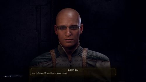 Мы сможем начать это задание, решив вопрос с регулятором мощности и попав на орбиту нашей первой планеты. Затем летим на звездолет «Первопроходец». Приземлившись, отправляемся в главную локацию, пройдя через контрольно-пропускной пункт. Попав в просторную область, начинаем осматриваться. С левой стороны замечаем торговца, а возле него обнаруживаем вход, ведущий в подпольную лавку Глэдис.