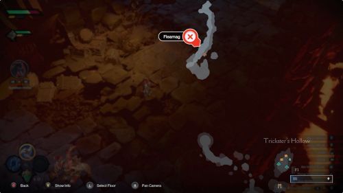 Попадаем в Шлаковую кучу. Наверху слева и справа обнаруживаем еще 2-х летучих мышей. Для открытия артефакта нам потребуется пройти по 3-м разным путям. Вначале идем налево и прыгаем наверх, воспользовавшись воздушным потоком. Расправляемся с противниками и прыгаем налево. Смотрим влево и замечаем 4-ю летучую мышь. Справа находится 3-я ячейка душ. Проходим дальше, разбираемся со всеми монстрами и активируем символ на полу.