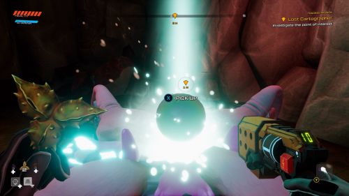 Важно: Рекомендуем обязательно взяться за выполнение квеста «Во имя науки!» и открыть инструмент, способный подсвечивать инопланетные сплавы, расположенные неподалеку (используем сканер, нажав на клавишу «Z»).