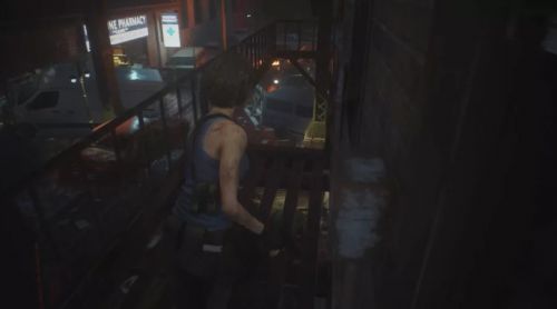 Начните убегать от монстра по коридору, а потом выпрыгните прямиком в окошко. Внизу мутант все же догонит героиню. Отбивайтесь от него, а после освобождения из его хватки бегите к пожарной лесенке. Противник схватит вас и кинет обратно в дом. Бегите по охваченному огнем коридору и выскочите наружу – Немезиса при этом завалит горящими обломками.