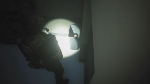 Откройте дверь и войдите в коридор. Здесь вы увидите, как лизун убьет двух правоохранителей. Немного впереди бродят мертвяки. Пройдите в командный пункт и возьмите световую гранату со стола. Отоприте следующую дверь и подберите со столика боеприпасы. Уберите засов с двери, чтобы войти в основной коридор. Разберитесь с пятью зомби. Доберитесь до северного тупика и возьмите лечебный спрей в коробке. Для открытия запертой двери понадобится ключ.