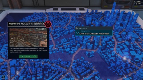 По возвращению в штаб-квартиру вы увидите, что до начала основной операции осталось два дня. Как обычно, проверяйте все доступные спецоперации, назначайте на них членов своей команды, и выбирайте любое доступное событие. Мы выбрали задание «Поддержите полицейскую операцию» в Старом городе, так как нам требовались дополнительные разведданные, но вы можете пройти задание «Выследите похитителей сплава», за которое дают кредиты