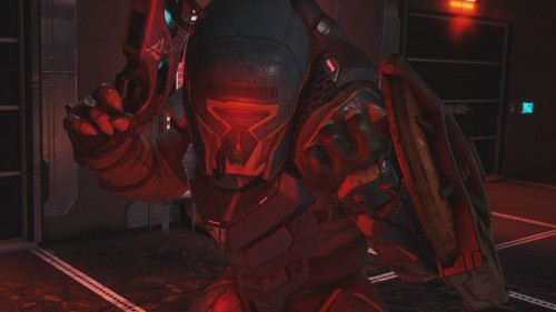 В третье помещение будет только один проход. Тут вы, скорее всего, столкнетесь с новым видом врагов – Кодексом. У него имеется крайне опасная способность, которая заключается в создании фиолетовой ауры, взрывающей все вокруг себя. Так что старайтесь не подходить к ней слишком близко. Для получения наибольшей награды не убивайте вербовщика, а задержите его.