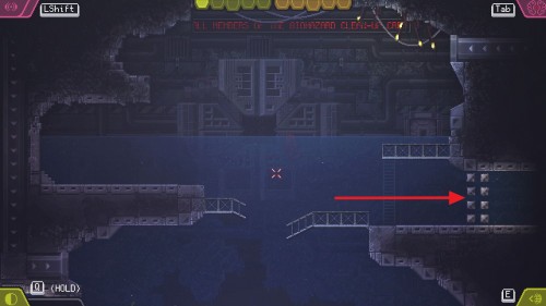Идите налево, пока не дойдете до помещения с несколькими людьми. Убейте их и направляйтесь в следующую комнату. Продолжайте двигаться налево, чтобы добраться до нескольких противников и дрона. Разберитесь с ними, а затем продолжайте ползти налево, пройдя через локацию с автоматической турелью. Спуститесь по трубе в левом углу. Здесь вы найдете способность «Гарпунорея». С помощью нее вы можете вытаскивать объекты, похожие на пробку, когда их плоская сторона обращена к вам.