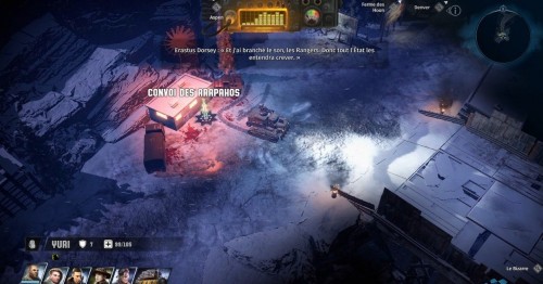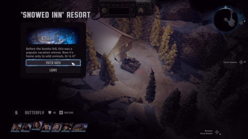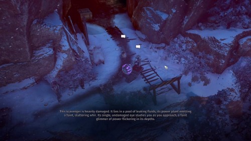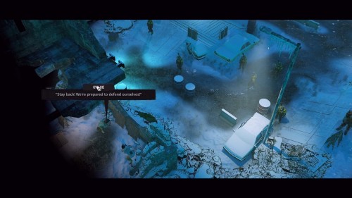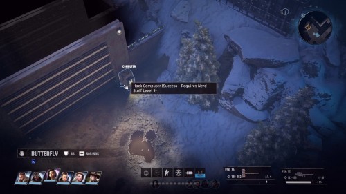 Если у вас достаточно Восприятия, то вы откроете секретный проход в снегу. В этом вам может помочь Лусия Вессон. Поднимитесь по лестнице и отключите турель с генератором, если у вас есть Работа с механикой (3). Разместите всю свою команду на балконе и прикажите им присесть, чтобы повысить их точность. Затем атакуйте Коллекционеров шрамов, которые взрываются при соприкосновении с членами вашего отряда. Не забывайте использовать Кадьяк на открытых пространствах.