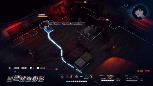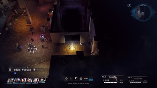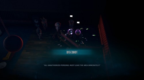 Обратите внимание, что турель в правой части комнаты соединена с генератором внизу (Работа с механикой 3), в то время как 3 странных клона патрулируют лабораторию. Теоретически персонаж с высокой незаметностью может пробежать вниз и поперек, чтобы избежать клонов и бесшумно отключить турель перед нападением.