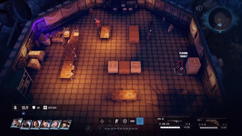 Убедитесь, что ваша группа готова, прежде чем начинать бой. Обратите внимание на две подсказки: взрывная бочка с правой стороны и генератор, питающий турель. Если у вас есть кто-то с навыком Работа с механикой (1), то он может отключить генератор, чтобы деактивировать башенку. В противном случае отправьте своих бойцов к укрытию перед дверным проемом и к стенам у входа. На правой стороне есть стопка ящиков, которые вы можете использовать для вырубания генератора.