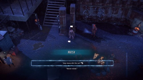 В переулке вы можете спасти Джорджию Овердрайв с помощью набора для наложения швов. Напоминаем, что для использования этого предмета вам понадобится Первая помощь (1).