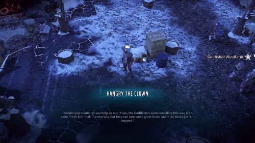 Когда окажемся в лагере рабов, то беседуем с Пэтси, которая стоит неподалеку от доктора и Торчилы. Платим ей и узнаем нужные сведения. Открываем карту и начинаем двигаться вниз. Обнаруживаем переход на Ферму ветряков божеловов. Прямо перед ним стоит Клоун Злюка. Разговариваем с ним и расправляемся с бизонами с правой стороны. Потом говорим с рабами. Мы сможем либо передать их Лос Паяцос, либо помочь им, перебив головорезов. С бандитами драться необязательно – можно просто напугать их.