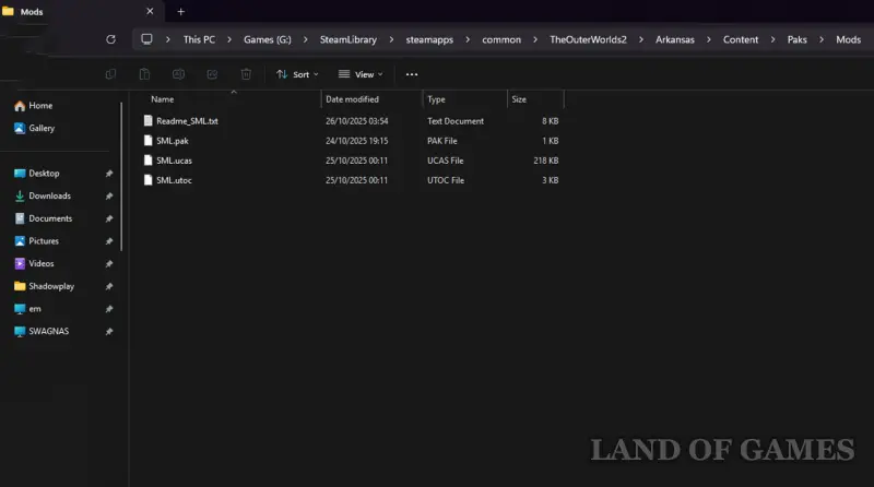 - Далее перейдите в директорию TheOuterWorlds2\Arkansas\Content\Paks\ и создайте здесь папку под названием «~mods» (без кавычек).