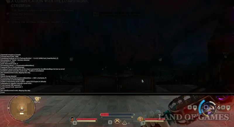 Как видите, ничего сложного в этом нет. Далее просто войдите в игру и нажмите на клавишу «~» (или «Ё» в русской раскладке), чтобы открыть консоль. Вы увидите черное окошко, показанное на скриншоте ниже. Именно сюда нужно вписывать консольные команды, а затем нажимать на клавишу «Enter» для их активации. Далее мы рассмотрим все наиболее полезные читы для The Outer Worlds 2.
