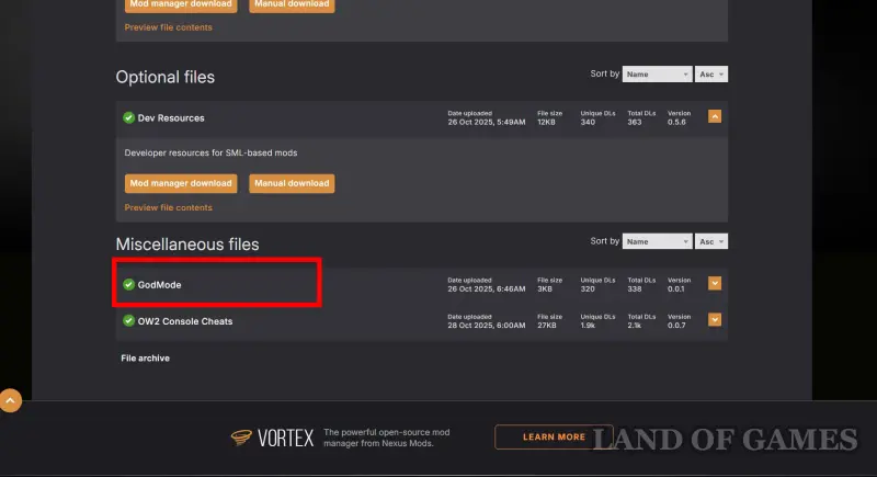 Для режима бога мододел подготовил отдельный мод, который опять же можно скачать с той же странички. В разделе «Files» отыщите файл «GodMode» (смотрите скриншот ниже) и загрузите его, а потом распакуйте во всей той же папке «~mods», которую вы ранее создали в директории игры.