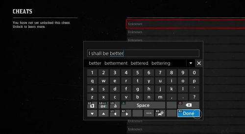 Примечание: Не забывайте, что многие читы не станут работать, если вы не приобрели или не нашли предметы, где они спрятаны. К тому же с включенными кодами открыть новые достижения будет невозможно.