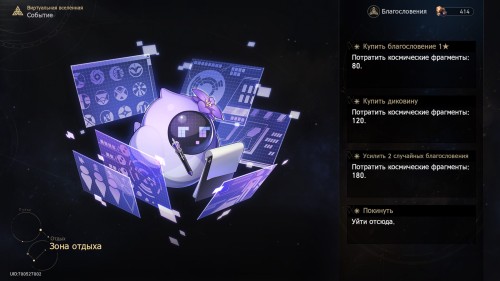- Можете иногда сбрасывать благословения при их выборе, тратя космические фрагменты. Однако не делайте это слишком часто, так как данная валюта пригодится вам для усиления баффов.