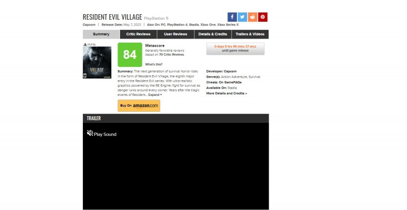 Capcom сняла ограничение на публикацию обзоров на Resident Evil Village, из-за чего в сети начали появляться первые оценки хоррора. Большинство изданий положительно оценили новое творение японских разработчиков, поэтому его средний рейтинг на Metacritic составил 84 балла из 100 возможных.