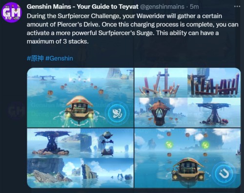Еще больше информации появилось о главном летнем событии «A Summer Sea Sojourn», действия которого развернутся на обновленной версии Архипелага Золотого яблока. Набрав в нем 2000 очков, можно будет совершенно бесплатно забрать в свой отряд Фишль. Появятся дополнительные испытания с использованием Волнохода (смотрите скриншоты ниже). Проходить их можно как в одиночку, так и с друзьями.