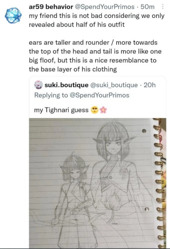 Он будет иметь модель подростка (Чун Юнь, Син Цю), длинные уши, как у Кли, и хвост с пушистым кончиком. Персонаж будет одет в шорты и майку. На скриншоте выше демонстрируется примерный набросок. Ожидается, что Тигнари появится в игре уже в обновлении 3.0, которое может выйти 24 августа.