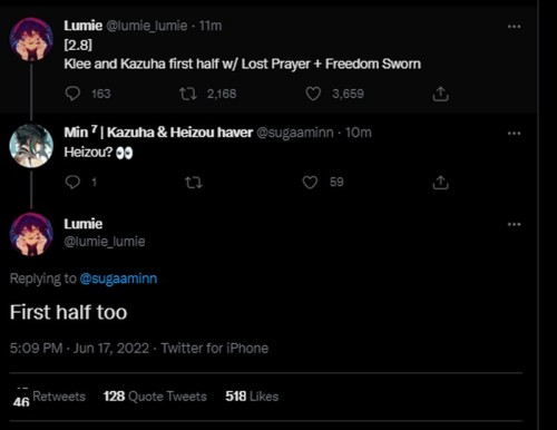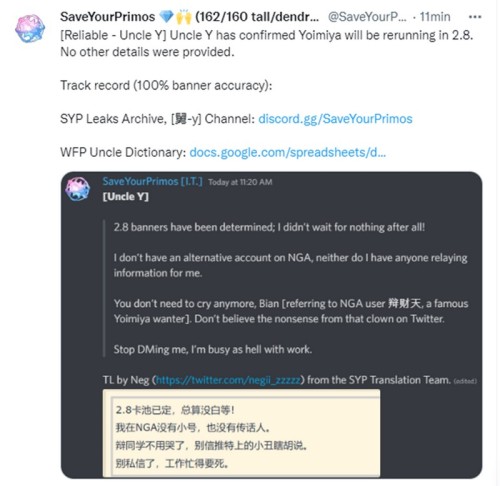 Инсайдер Lumie, часто публикующий достоверные сведения по грядущим обновлениям Genshin Impact, отметил, что в первой фазе патча 2.8 разработчики собираются провести рераны Кли и Кадзухи.