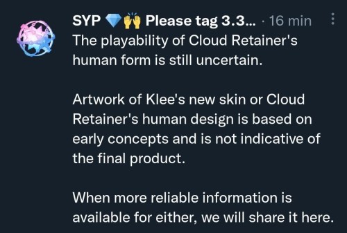 Кстати, человеческая форма Хранителя облаков многим игрокам напомнила внешний вид Байонетты из серии слэшеров Bayonetta. Что касается новых скинов, то дополнительные облики, по словам SYP, могут также появиться у Сахарозы, Эмбер, Кэйи и Чжун Ли. Правда, неизвестно, когда именно это произойдет.