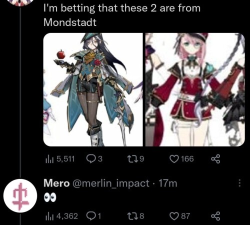 Один из пользователей затем выделил изображения розоволосой девушки в кепке и высокой женщины в треуголке (капитан R) и предположил, что именно они родом из Мондштадта. Информатор не стал подтверждать это напрямую, разместив лишь смайлик с глазами.