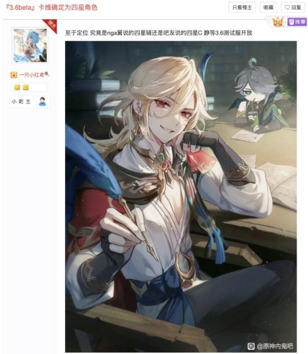 Информатор Tao на своей страничке в соцсети Twitter заявил, что Кавех будет добавлен в Genshin Impact вместе с выходом обновления 3.6. Позднее Baidu сообщил, что он окажется 4-звездочным персонажем и будет присутствовать в одном баннере с Бай Чжу. В качестве источника он называет закрытую бету.