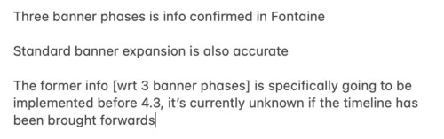 Ранее было неизвестно, когда именно произойдет переход на новую систему баннеров. Сейчас же Team China отмечает, что это случится между версиями 4.0 и 4.3. Однако инсайдер не исключает, что разработчики могут перенести это нововведение на более поздний срок.
