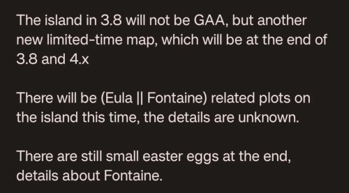Группа инсайдеров Team China, которая частенько публикует достоверную информацию по Genshin Impact, заявила, что в обновлении 3.8 разработчики не собираются проводить очередной реран Архипелага Золотого яблока. Вместо него в игру будут добавлена другая временная локация, которую уберут в патче 4.Х.