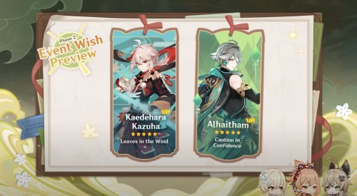 Во второй фазе будут выпущены баннеры аль-Хайтама и Кадзухи. Что касается оружейной Молитвы, то в ней будут представлены сигнатурные вооружения указанных выше героев, а именно: Громовой пульс (лук), Истина кагура (катализатор), Свет лиственного разреза (одноручный меч) и Клятва свободы (одноручный меч).
