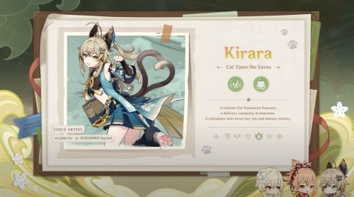 Немало информации было посвящено кошкодевочке Кираре – были продемонстрированы ее основные способности и навыки. Например, она способна быстро взбираться на вертикальные поверхности в форме коробки-кошки и создавать щит. В трейлере был также показан новый персонаж из Фонтейна – журналистка по имени Шарлотта. Если верить предыдущим утечкам, она окажется играбельной героиней, а ее стихией будет Гидро.