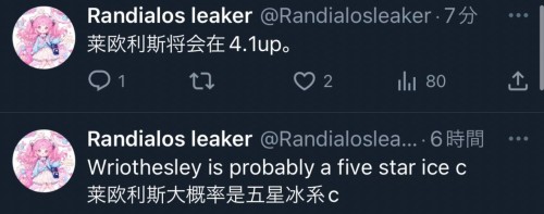 Чуть позднее Tao (Plusle), сославшись на Randialos leaker, сообщил, что Ризли должен будет выйти уже в патче 4.1. Он окажется 5-звездочным персонажем, который в команде будет играть роль основного дамагера. Отмечается, что он носит Крио Глаз бога. Инсайдер также разместил фанатский скетч героя, который очень похож на оригинал.