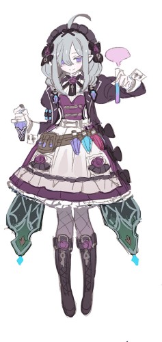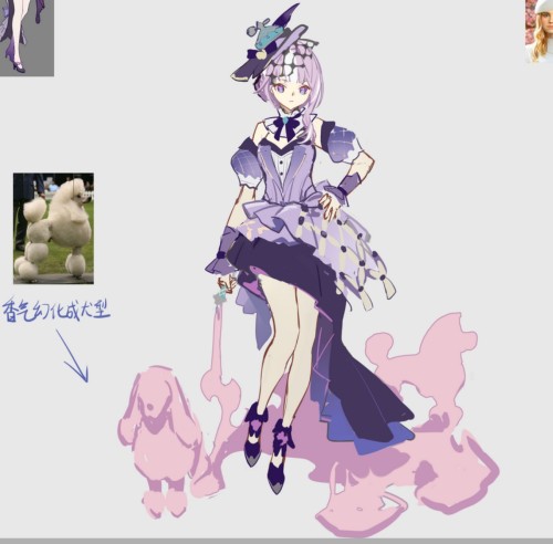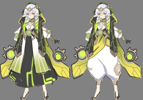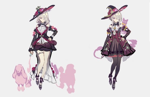 В утечке было обнаружено большое количество артов, на которых изображены яркие девушки в экстравагантных нарядах. Среди них можно даже увидеть кошкодевочку с хвостом и длинными ушами, как у Кли. При этом все эти изображения относятся к одному персонажу. Видимо, художники долго не могли выбрать финальный облик этой ведьмы. Не ясно, какой из концептов в итоге был выбран ими в качестве итогового. Возможно, его и вовсе нет среди представленных рисунков.