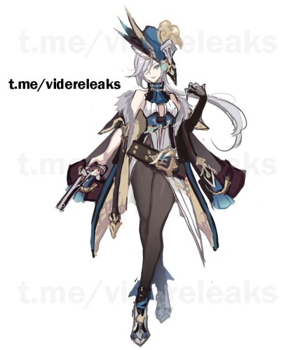 Добавим, что инсайдер videreleaks слил в сеть арты новой неизвестной героини. Судя по ее внешнему виду, она родом из Гидро региона. В руках у нее можно увидеть пистоль. Вряд ли речь идет о новом типе оружия в игре. Скорее всего, она, как и Мика с арбалетом, будет использовать пистолет во время обычной атаки или активации способностей.