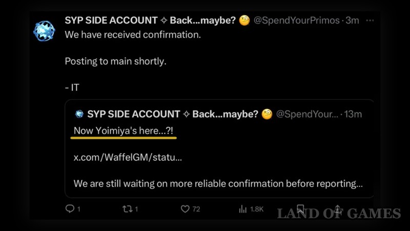 Стоит отметить, что до выхода текущего патча предпоследний реран Еимии, состоявшийся с апдейтом 3.2 (вместе с Нахидой), удерживал лидирующую позицию по количеству прибыли и только недавно был смещен с первого места релизом Гидро Архонта (по данным GenshinLab). Это вполне может стать причиной такого весьма неожиданного возвращения лучницы, которая теперь заняла место Альбедо и Итто, рераны которых инсайдеры ранее пророчили на обсуждаемое обновление.