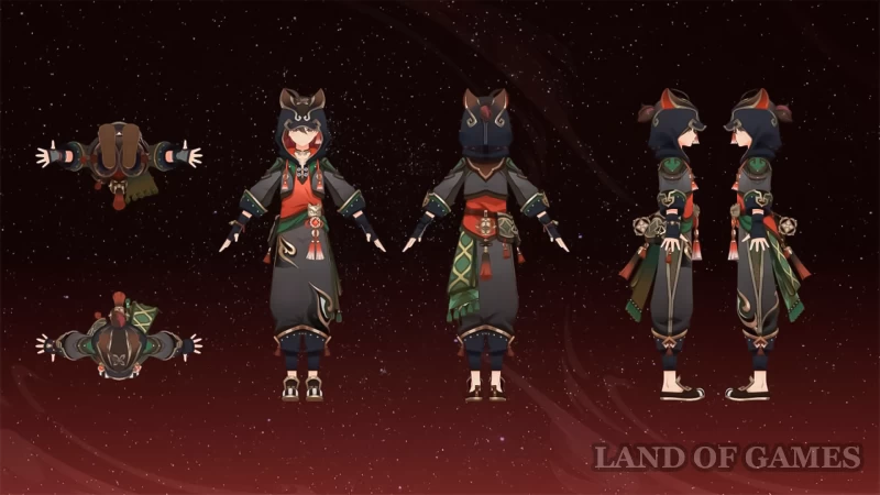 Похожие утечки есть и по Ка Мину (4 ★/Пиро двурук): его свежие арты и геймплей. Из интересного можно отметить, что персонаж имеет два рендера игровой модельки (с капюшоном и без него), а на сплеш-арте с ним изображен маленький львенок-компаньон.