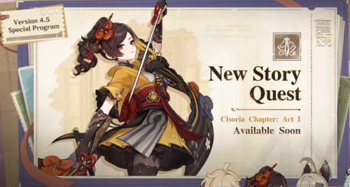 Стало известно, что в первой половине патча будет выпущена 5-звездочная Тиори (Гео, одноручный меч), которая считается известным модельером в Фонтейне, держащим собственный магазин одежды. При этом ее родиной является Инадзума. Компанию же ей составит Аратаки Итто (Гео, двуручный меч). В оружейном баннере появится новый одноручный меч Ураку мисугири и двуручное оружие Краснорогий камнеруб.