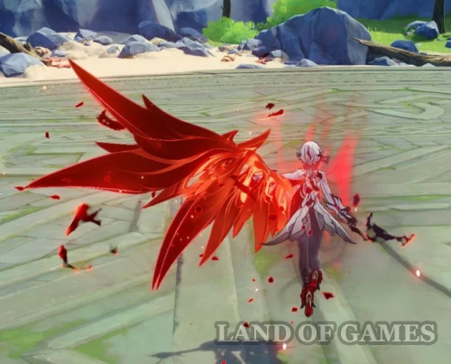 Также неизвестный источник сделал несколько кадров, на которых можно разглядеть все детали крыла Арлекино, которое возникает при использовании заряженной атаки.