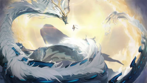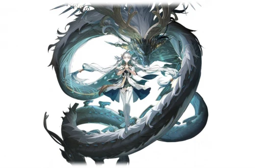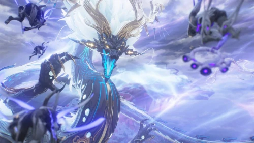 Он представляет собой огромного дракона с черной кожей, белой шерстью и синими светящимися узорами на теле.