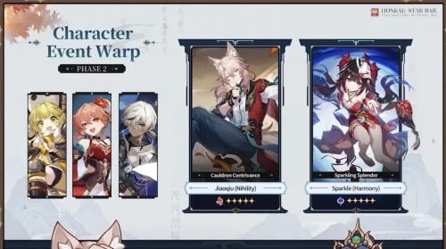 Во второй фазе будет выпущен член Комиссии Алхимии по имени Цзяоцю (Небытие: Огненный) и проведен реран Искорки (Гармония: Квантовый). В качестве эпических героев будут фигурировать: Арлан (Разрушение: Электрический), Гуйнайфэнь (Небытие: Огненный) и Хук (Разрушение: Огненный).