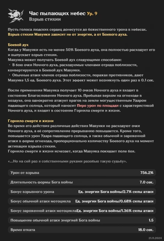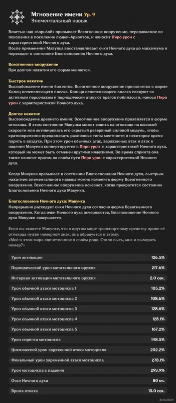 Мавуика – пятизвездочный Пиро двурук, которая может буквально разрывать врагов, катаясь на своем огромном байке! А также наносить большое количество Пиро-урона с Ешки и Ульты. Возможно, на данный момент Мавуика может быть одним из сильнейших Архонтов в Genshin Impact.
