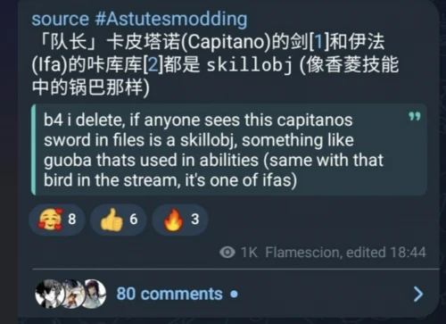 Согласно словам информатора flyingflame, первый Предвестник Фатуи станет играбельным уже в патчах 6.Х, то есть он вполне может выйти в конце текущего года или в начале следующего (что более вероятно). Ранее отмечалось, что персонаж будет представлен без маски. Видимо, Капитану как-то удастся избавиться от своего бессмертия и проклятия.