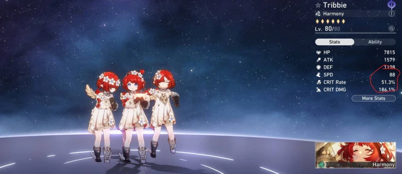 Трибби – это 5-звездочный персонаж, который будет заниматься поддержкой команды. Ее способности могут усиливать несколько членов группы одновременно, и интересная особенность – ее навыки зависят от того, где она стоит в отряде. На старте игры она может снижать сопротивление элементам у противников и их защиту, а также увеличивать урон союзников.