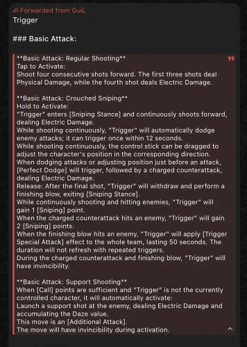Геймплей Гашетки ориентирован на вызов оглушения у врагов и нанесение критического урона, особенно при правильном управлении ее стойками и пассивными способностями.