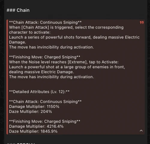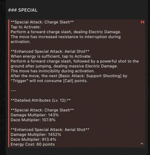 - Выстрелы наносят электрический урон, персонаж автоматически уклоняется от атак раз в 12 секунд. Завершающий удар активирует бафф для всей команды на 50 секунд.