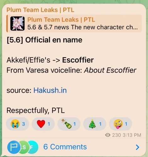 Еще в декабре 2024 года на официальном стриме по версии 5.3 разработчики Genshin Impact анонсировали нового персонажа – девушку-повара, чье имя в локализации оказалось Эскофье, хотя ранее предполагалось, что ее будут звать Эффи/Акеффи. В преддверии ее возможного появления в будущем мы собрали новые сливы о героине.